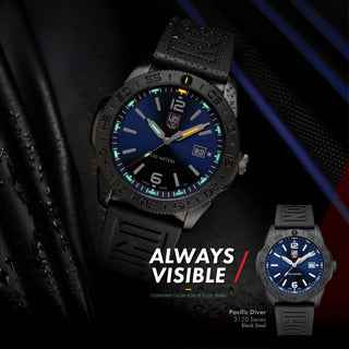 A exclusiva tecnologia Luminox Light garante visibilidade imediata - a tecnologia dos relógios Luminox fornece brilho 24 horas por dia, 7 dias por semana, independentemente das condições climáticas, por até 25 anos.